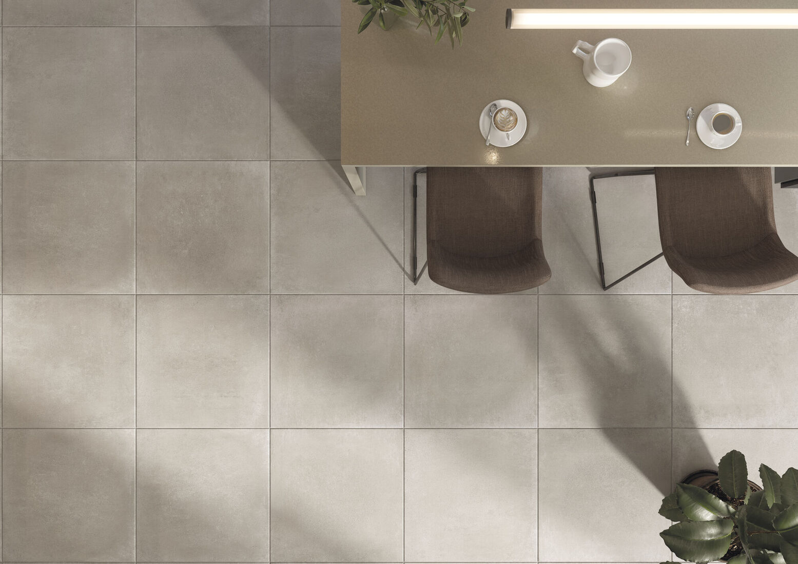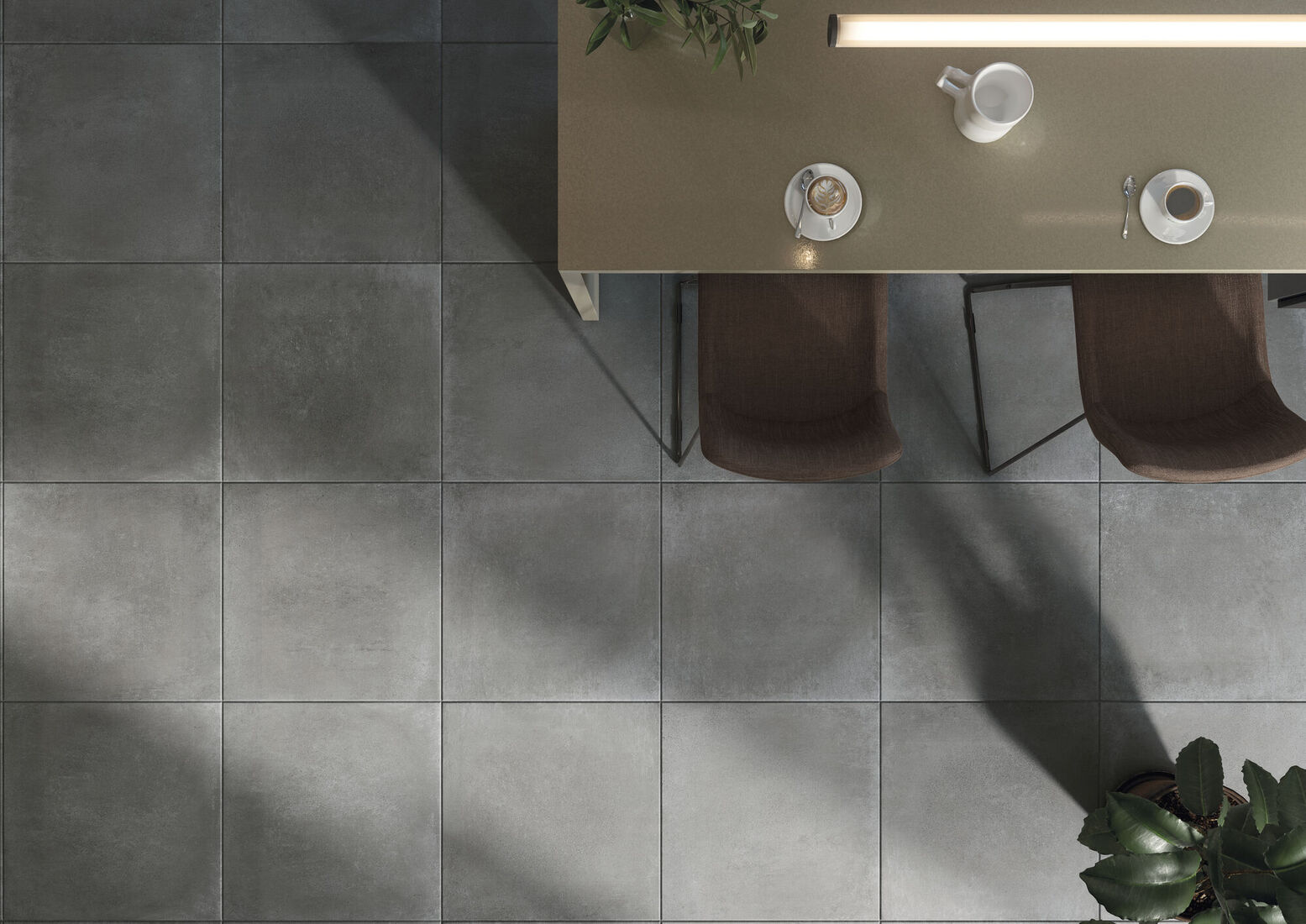 •Salon et Salle à Manger : Apportez une touche de sophistication urbaine avec des sols en carrelage aspect béton. Leur look épuré et moderne s’harmonise parfaitement avec des meubles en métal et en bois pour un style industriel.