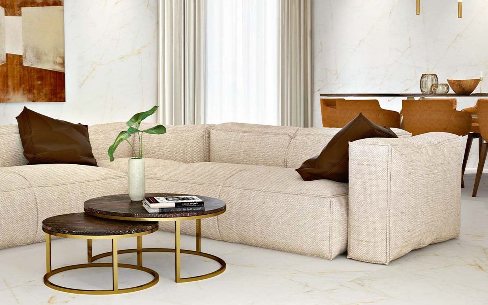 •Salon et Salle à Manger : Transformez votre salon ou votre salle à manger en un espace sophistiqué avec des sols en carrelage aspect marbre. Leur apparence luxueuse et leur durabilité en font un choix parfait pour les espaces de vie principaux.