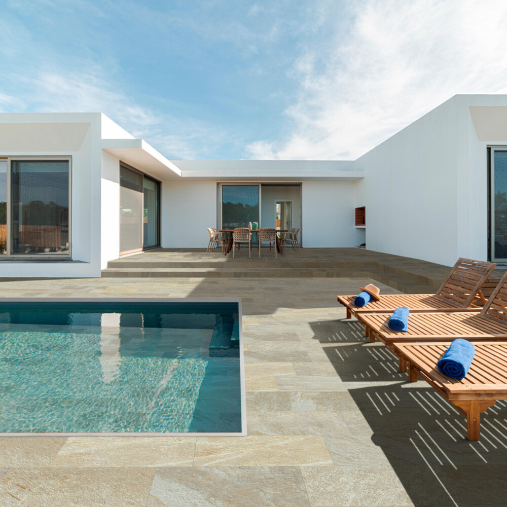 •Polyvalence de Design : Disponible en diverses teintes et finitions, ce carrelage s’adapte à tous les styles de décoration extérieure, du classique au moderne. Il peut être utilisé pour créer des sols de terrasse harmonieux et esthétiques, apportant une continuité visuelle et une ambiance naturelle.