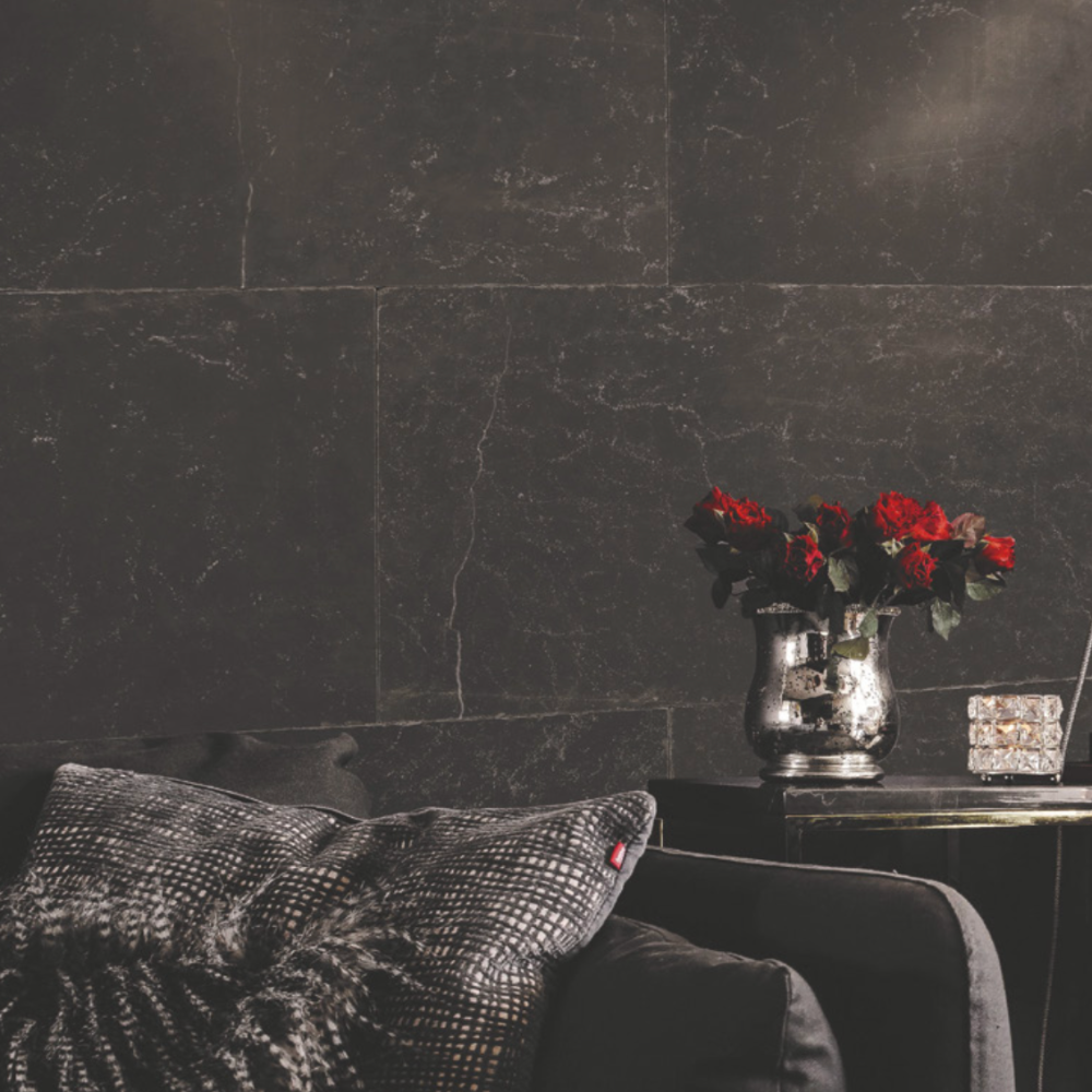 Créez un espace moderne et minimaliste avec le dallage Vulcano Black, idéal pour les salons, cuisines ou salles de bains.