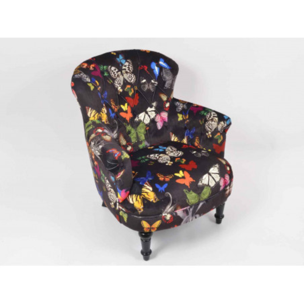 Polyvalence : Grâce à son style intemporel, le fauteuil Farfalla s’adapte aussi bien aux espaces contemporains qu’aux décors plus classiques.