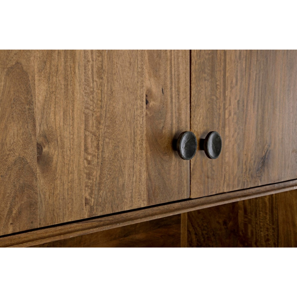 Le Meuble 4 Volets Sylvester est une pièce fonctionnelle et élégante, idéale pour apporter une touche vintage à votre intérieur. Fabriqué en bois de manguier avec une finition à base d’eau, ce meuble est conçu pour allier esthétique et durabilité. Sa structure robuste est complétée par des poignées en acier, offrant un aspect à la fois rustique et raffiné. Chaque compartiment dispose d’une étagère pratique pour optimiser le rangement.
