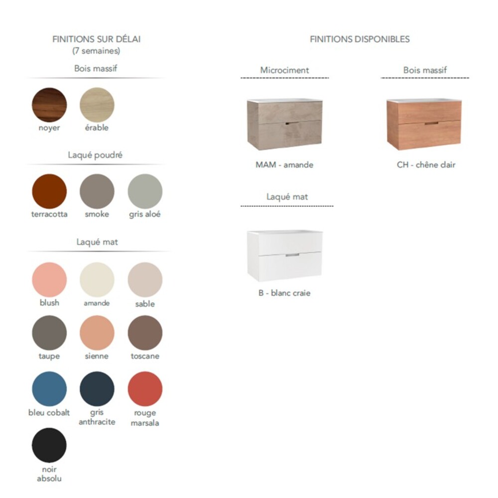 •Finitions Premium : Micro-ciment et laqué sur MDF, ou chêne massif pour une touche naturelle et durable.