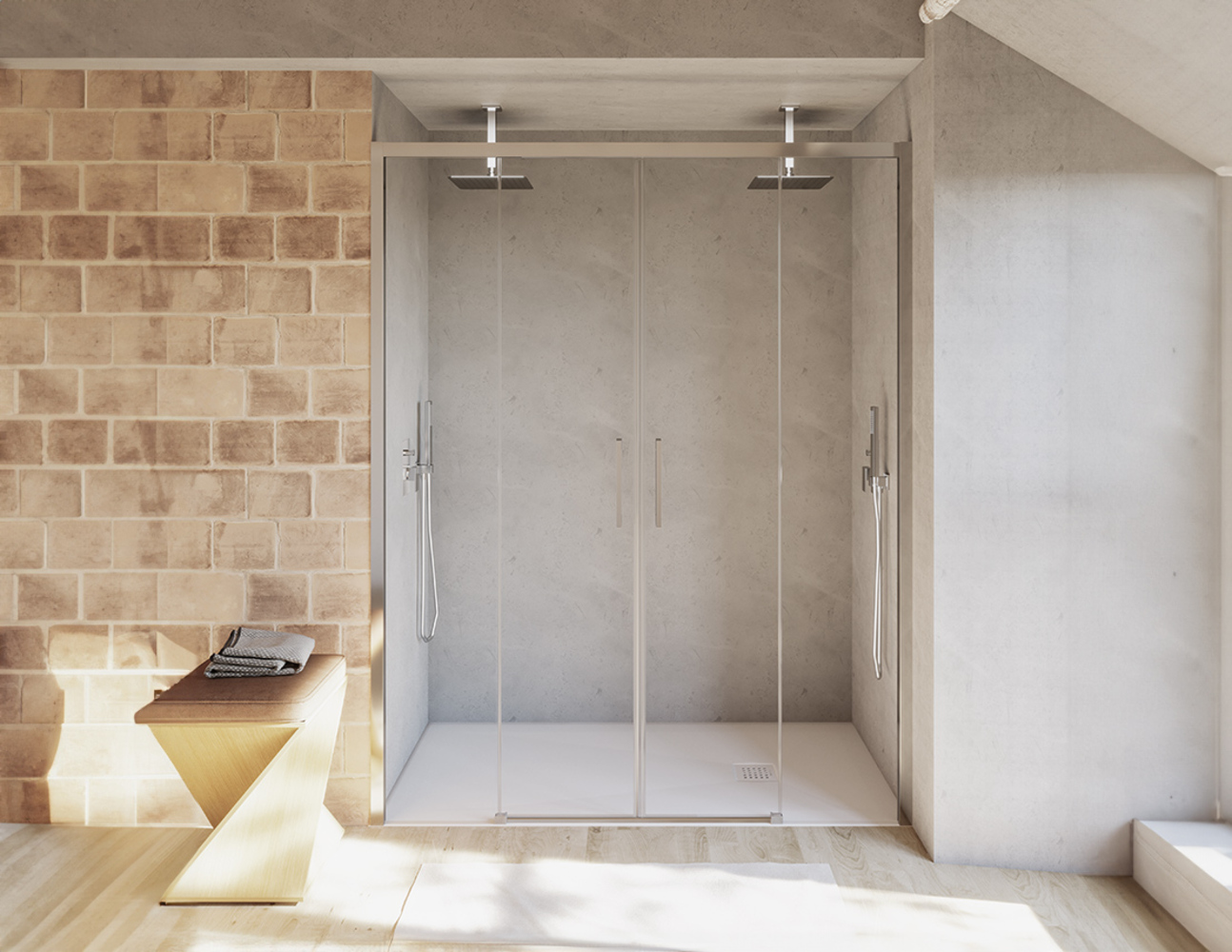 Optez pour la paroi Lisboa 2 Frontale Coulissante pour une solution élégante et fonctionnelle, idéale pour les salles de bain modernes.
