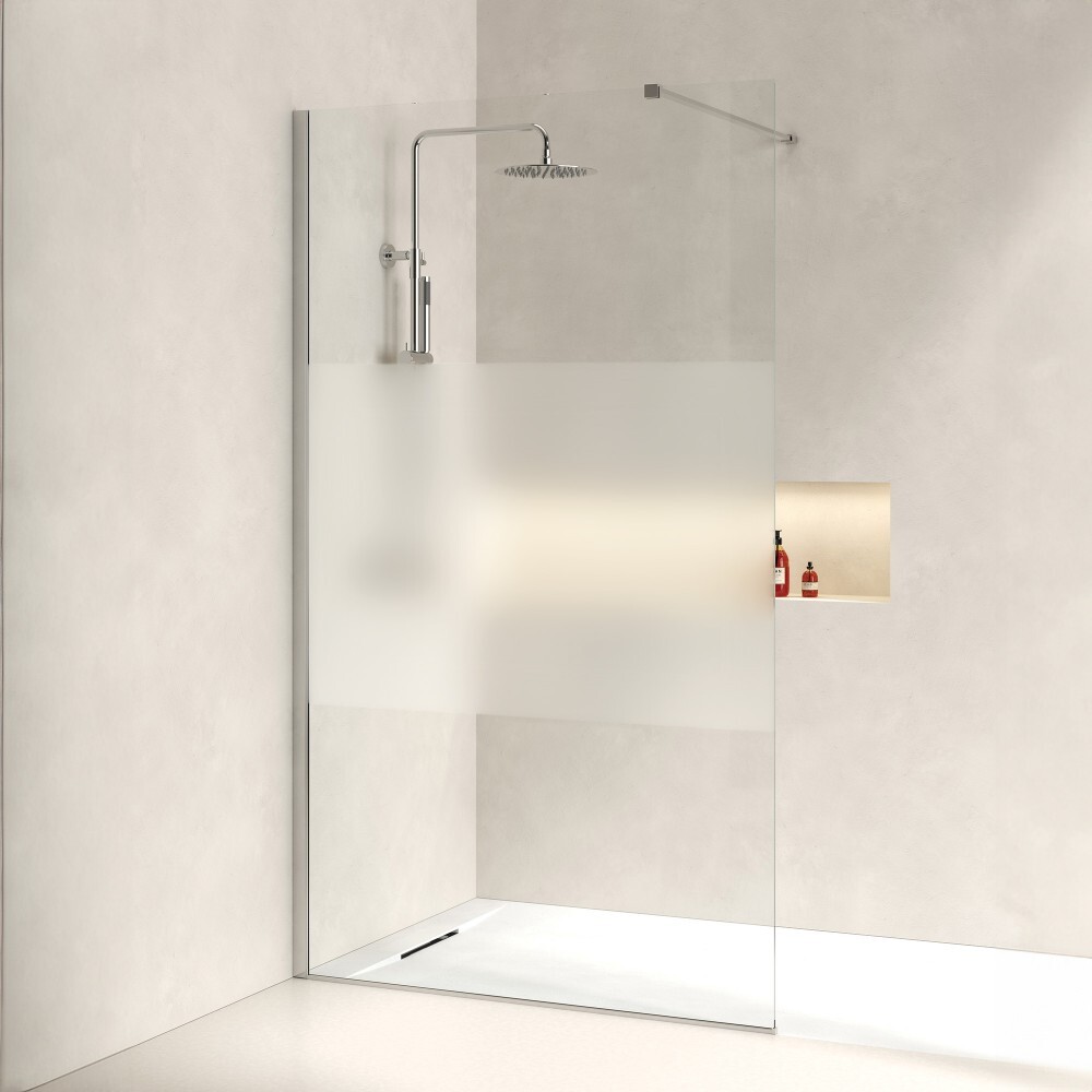 La paroi de douche NEO Concept se distingue par sa polyvalence et son design raffiné, conçu pour s’adapter à toutes les configurations de salle de bain. Fabriquée en verre trempé SECURIT 8 mm traité anti-calcaire, elle est disponible en plusieurs finitions : transparent, fumé, avec des options telles que le bandeau dépoli, cannelé, ou un angle arrondi pour un look personnalisé. Cette gamme propose diverses configurations, de simples parois fixes à des retours pivotants ou fixes pour un espace de douche sur-mesure.