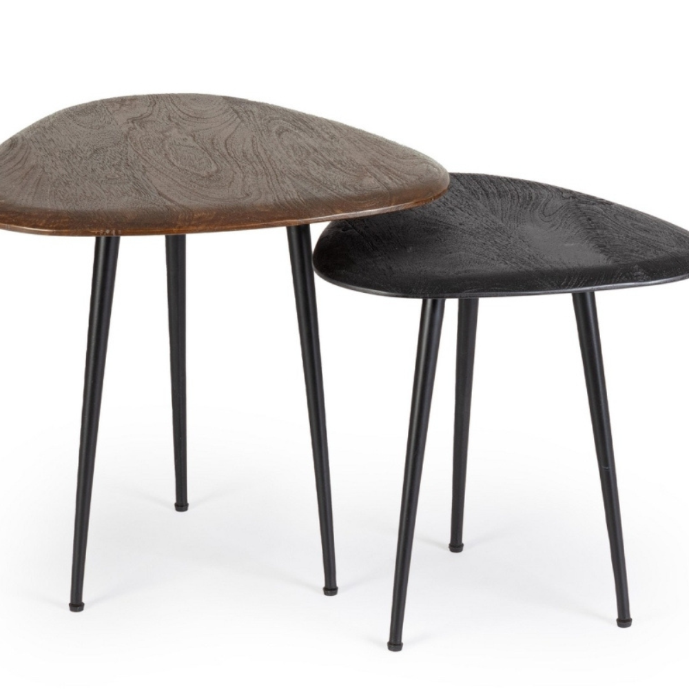 Le Set de 2 tables basses Mayo est un mariage parfait entre rusticité et modernité. Avec leurs plateaux en bois de manguier à la finition naturelle à base de nitrocellulose, ces tables apportent une touche chaleureuse et authentique à votre intérieur. Le contraste avec les pieds en acier peint à poudre ajoute une note industrielle élégante, idéale pour un style vintage.