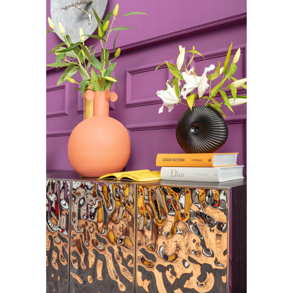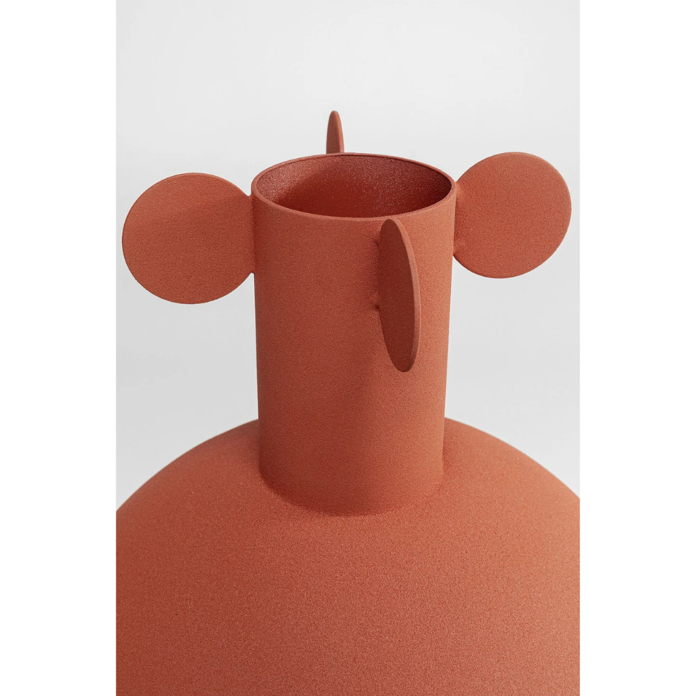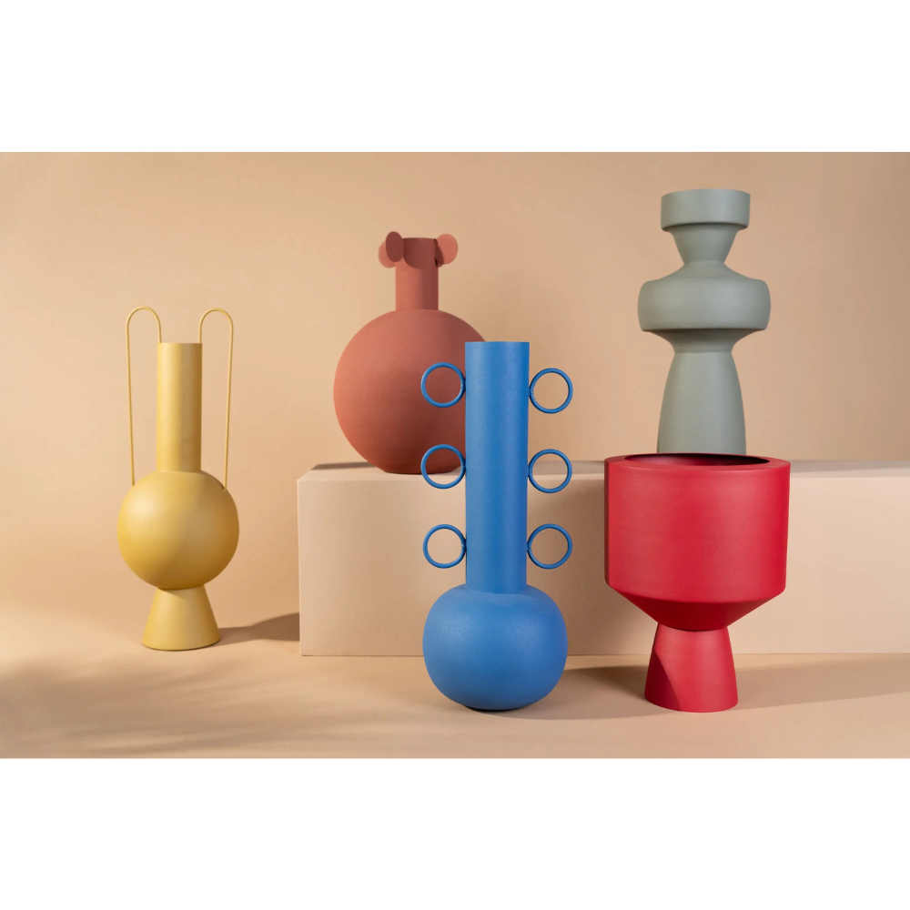 Ce vase au design minimaliste, disponible en brun, orange et rouge terreux, capte immédiatement l’attention. Avec ses formes géométriques épurées, il peut facilement être perçu comme une œuvre d’art sculpturale. Idéal comme décoration ou comme vase pour des fleurs, ce modèle en acier laqué combine style et fonctionnalité. Grâce à son allure moderne et intemporelle, il constitue également un cadeau raffiné. Parfait pour embellir un intérieur, il trouvera sa place sur une étagère ou un buffet.